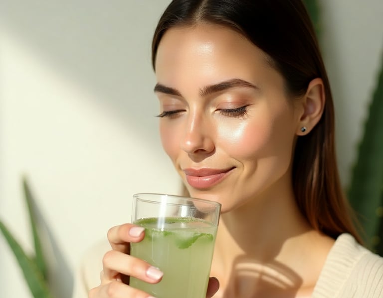 The concept that drinking aloe improves skin from the inside is appealing but has limited direct research support.